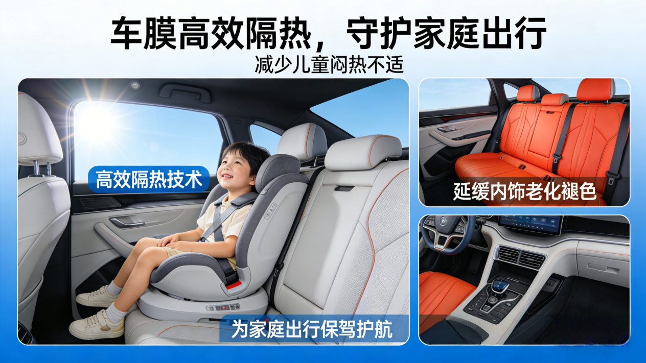 带娃出行时,孩子娇嫩的皮肤最怕紫外线伤害 —— Polarie拜瑞窗膜 99%+ 的紫外线阻隔率,能为孩子筑起 “移动防晒墙”;同时,高效隔热可减少儿童乘车时的闷热不适,延缓座椅、中控台等内饰的老化褪色,为家庭出行保驾护航。