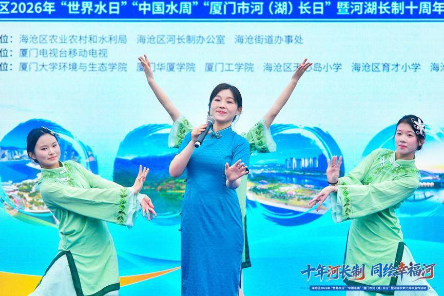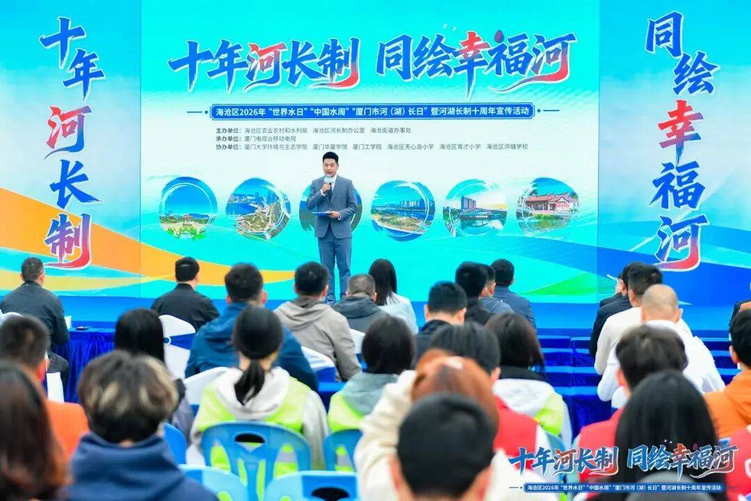 在第三十四届 “世界水日”、第三十九届 “中国水周” 及第五届 “厦门市河(湖)长日”来临之际,恰逢国家全面推行河长制十周年,海沧区 2026年“世界水日”“中国水周”“厦门市河(湖)长日”暨河湖长制十周年宣传活动在莲塘别墅圆满举办。本次活动由海沧区农业农村和水利局、海沧区河长制办公室、海沧街道办事处主办,厦门电视台移动电视承办,厦门大学环境与生态学院、厦门华厦学院、厦门工学院、海沧区天心岛小学、海沧区育才小学、海沧区洪塘学校共同协办,以沉浸式体验、多维度互动、多渠道传播,让节水护水理念深入人心,绘就了全民共建海沧幸福河湖的生动图景。