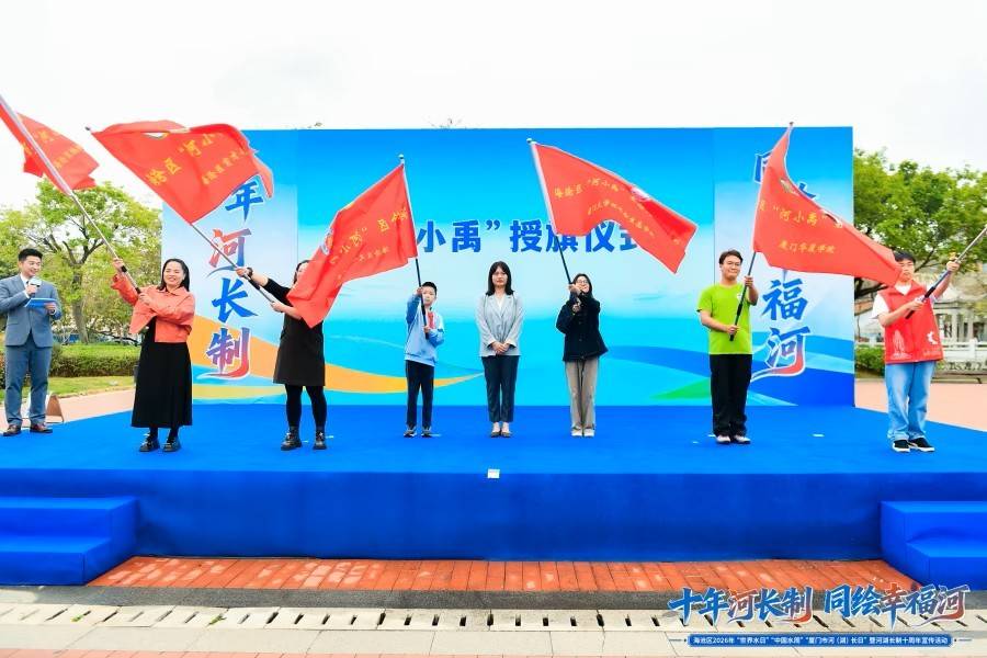 授旗环节,积极投身海沧美丽河湖建设的厦门大学“河小禹”生态文明实践队、厦门华厦学院“河小禹”社会实践队、厦门工学院“河小禹”实践队以及来自海沧区天心岛小学、海沧区育才小学、海沧区洪塘学校的“河小禹”队伍许下了承诺,扛起了护水的责任,接下来,他们将以旗为令,以行践诺,继续用青春力量守护海沧的碧水清波,建设海沧的美丽生态。
